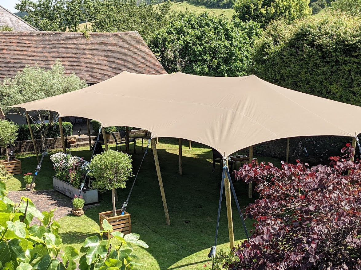 Our Medium / Big sized 12m x 8m Sand Canvas Canopy, Perfect for Café / Pub or Restaurant Gardens, Small Events and Garden Party's.